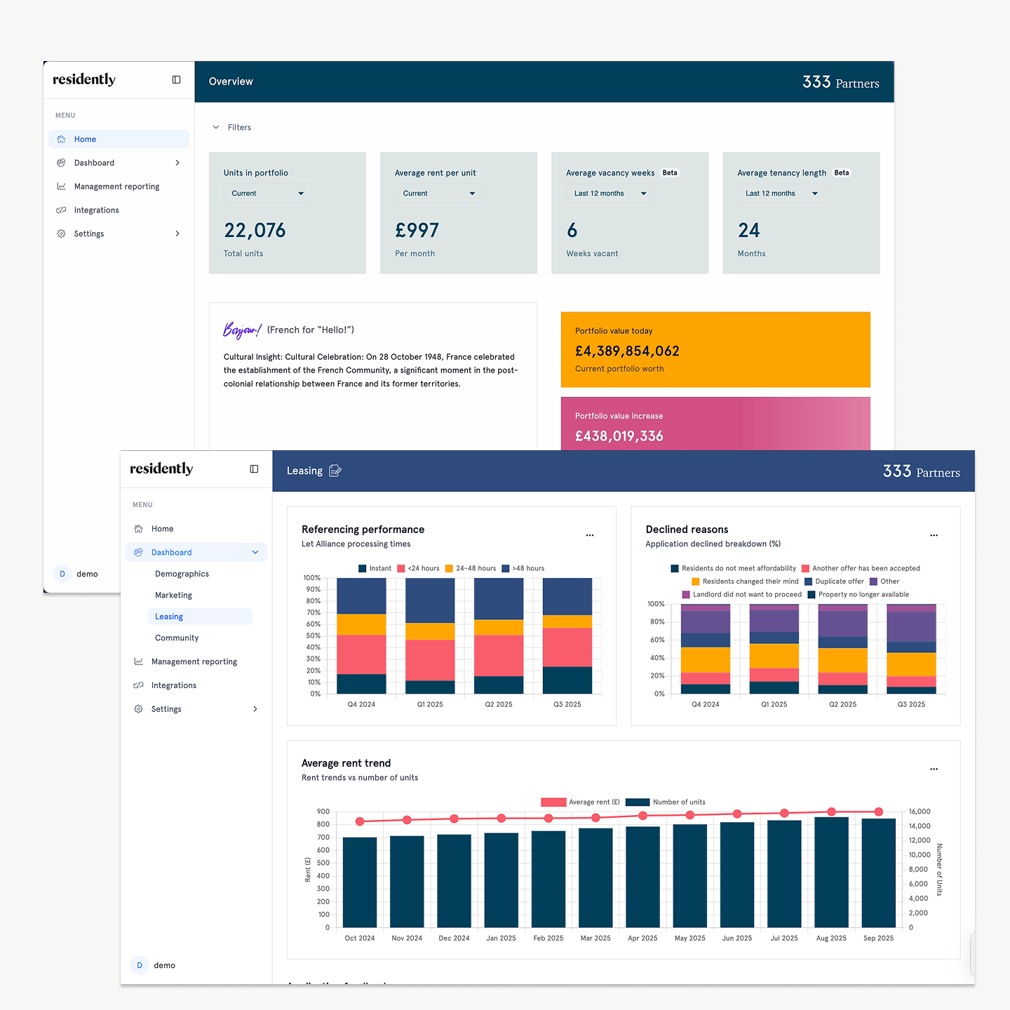 Align resident behaviour with fund-level goals. Residently's connected data layer makes it easy to reward positive actions — renewals, referrals, on-time payments — tying everyday engagement to measurable portfolio outcomes.